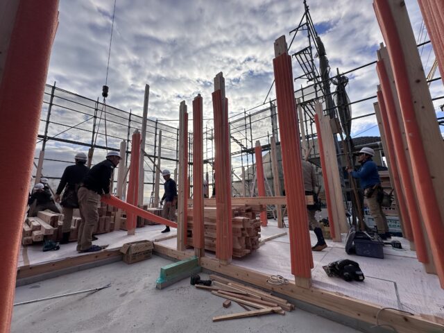 棟上げも順調。大きいので少しずつですが形が見えてきました