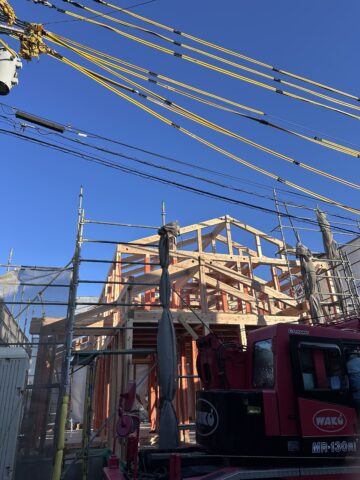 12月15日、風も穏やかな晴れた日、H様邸の棟上げが行われました。