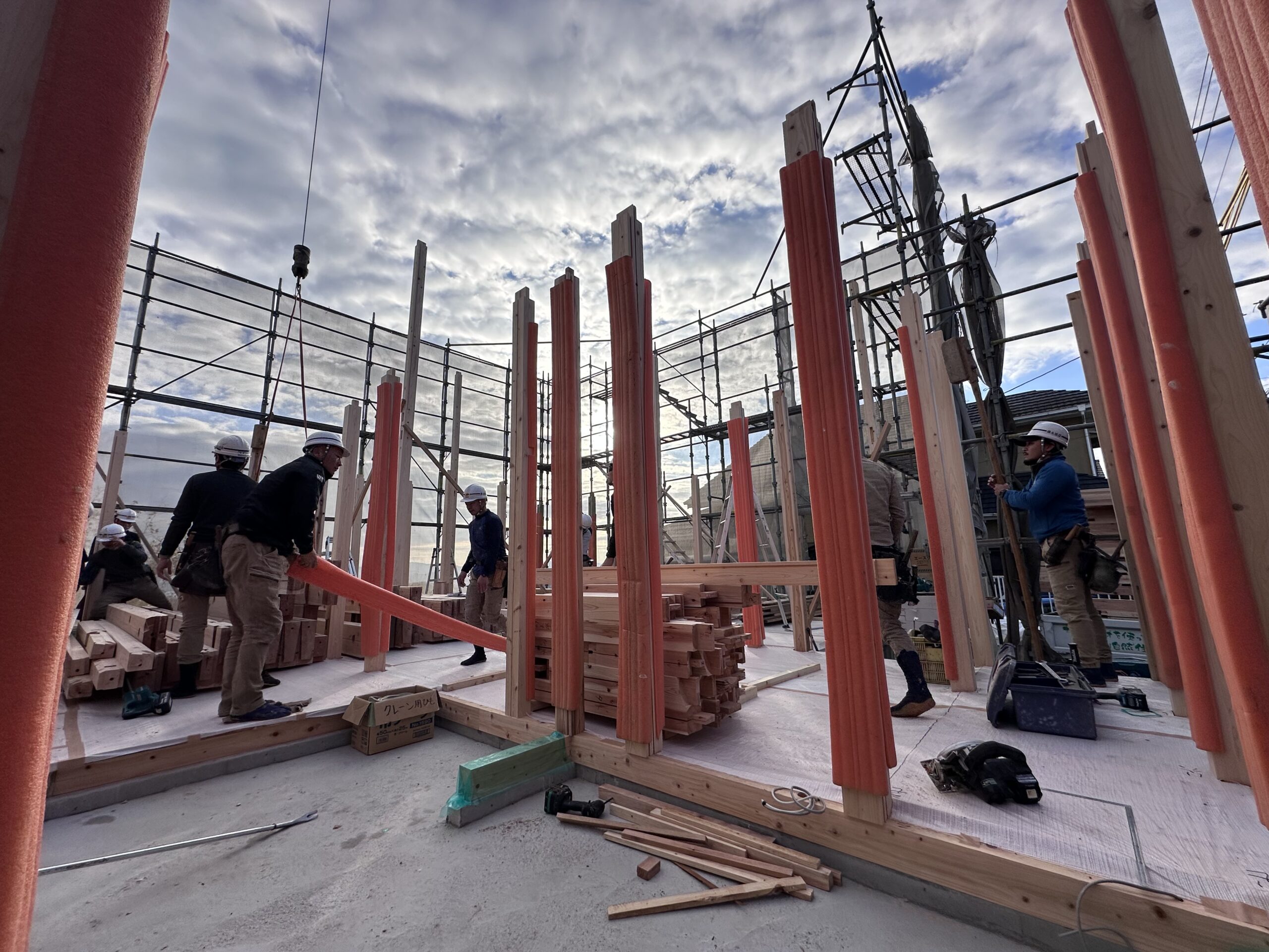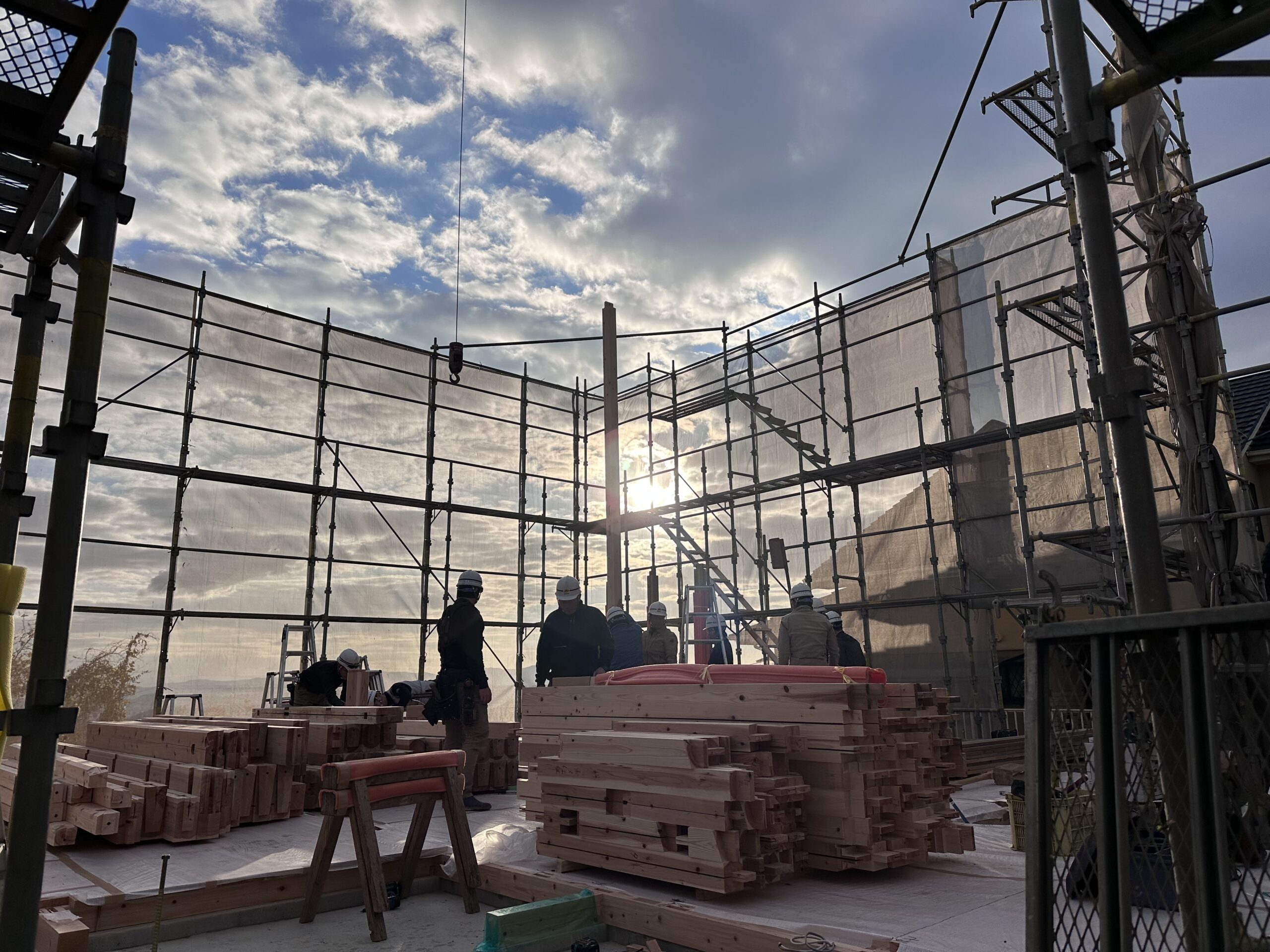 12月15日、風も穏やかな晴れた日、H様邸の棟上げが行われました。