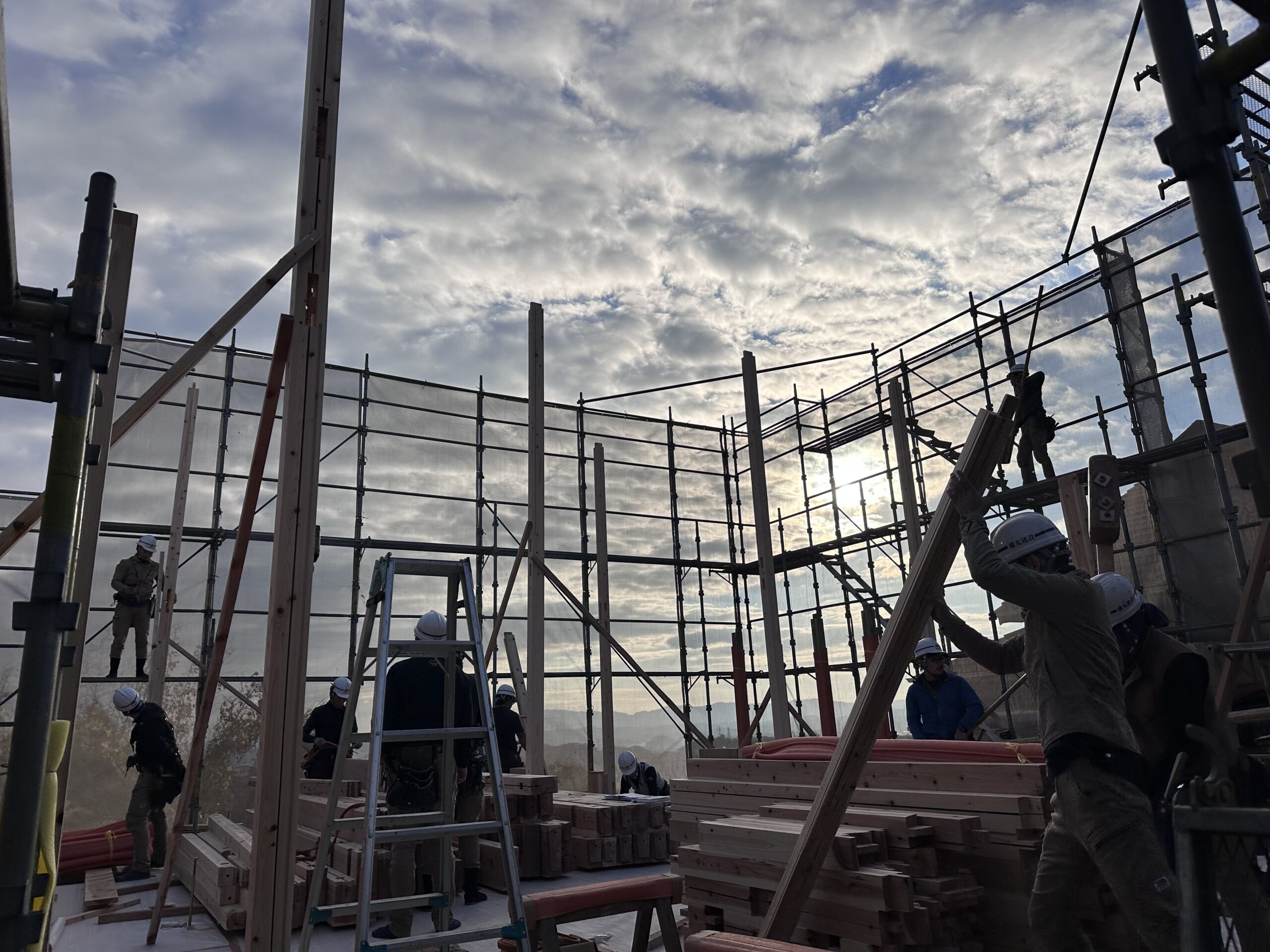 棟上げも順調。大きいので少しずつですが形が見えてきました