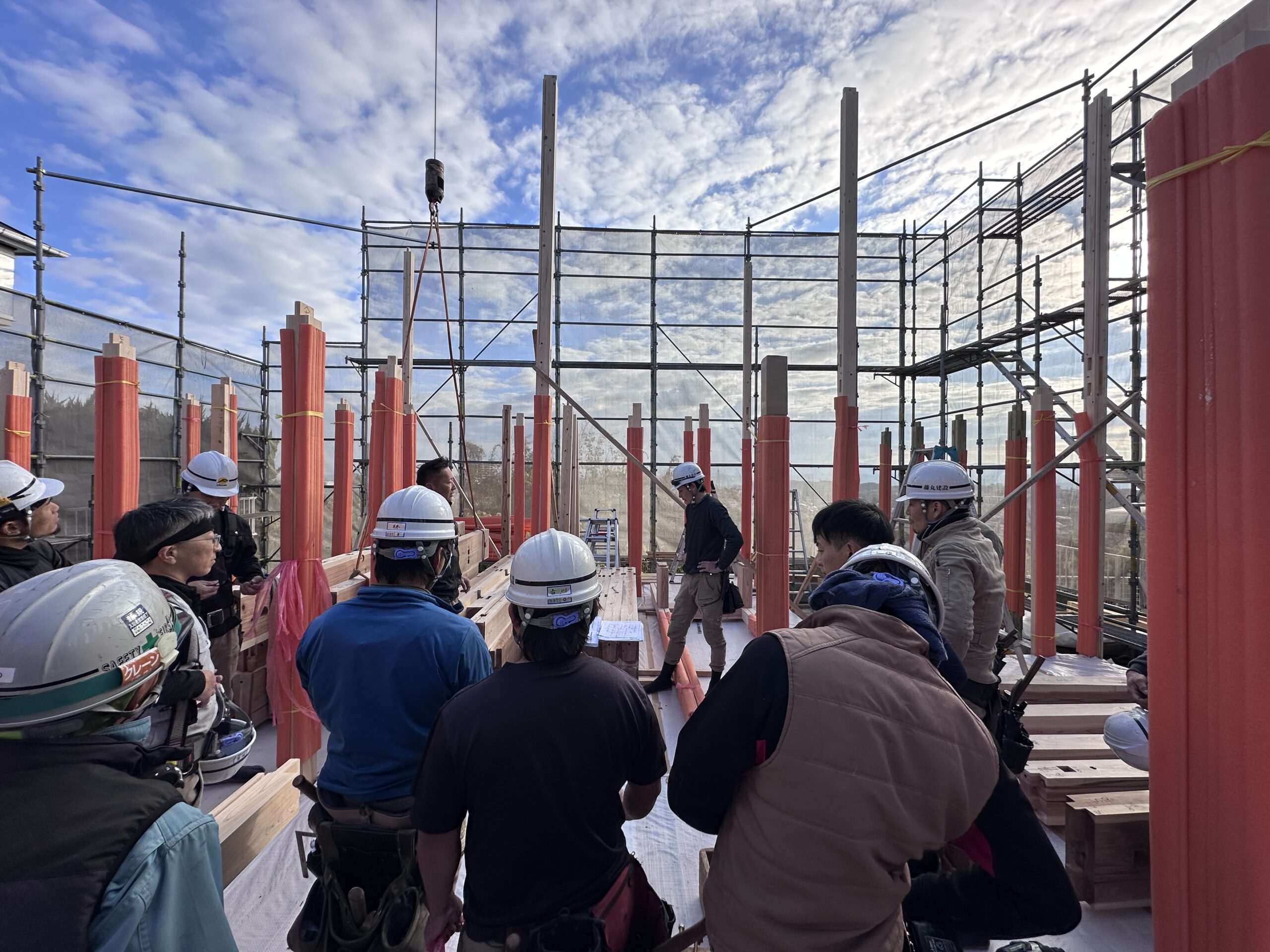 担当の梶原棟梁も、この日総出の大工さんも、大工さん&左官さんの二刀流の小玉君もみんな招集!