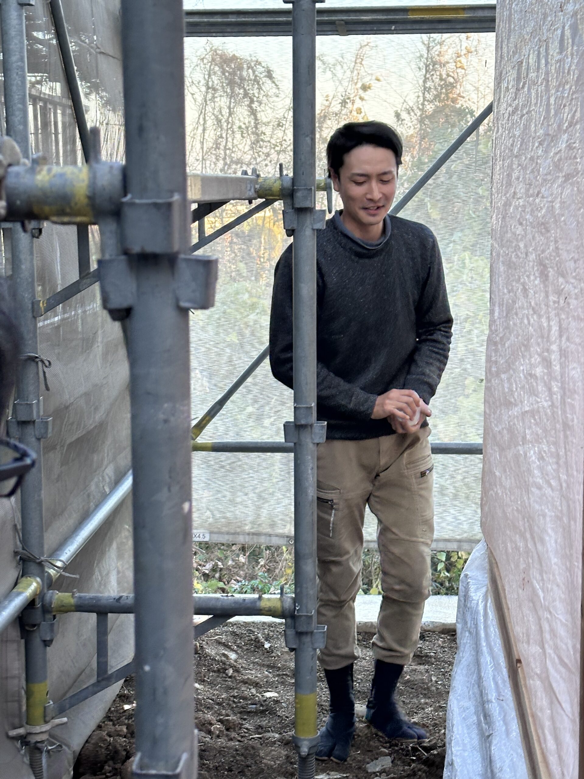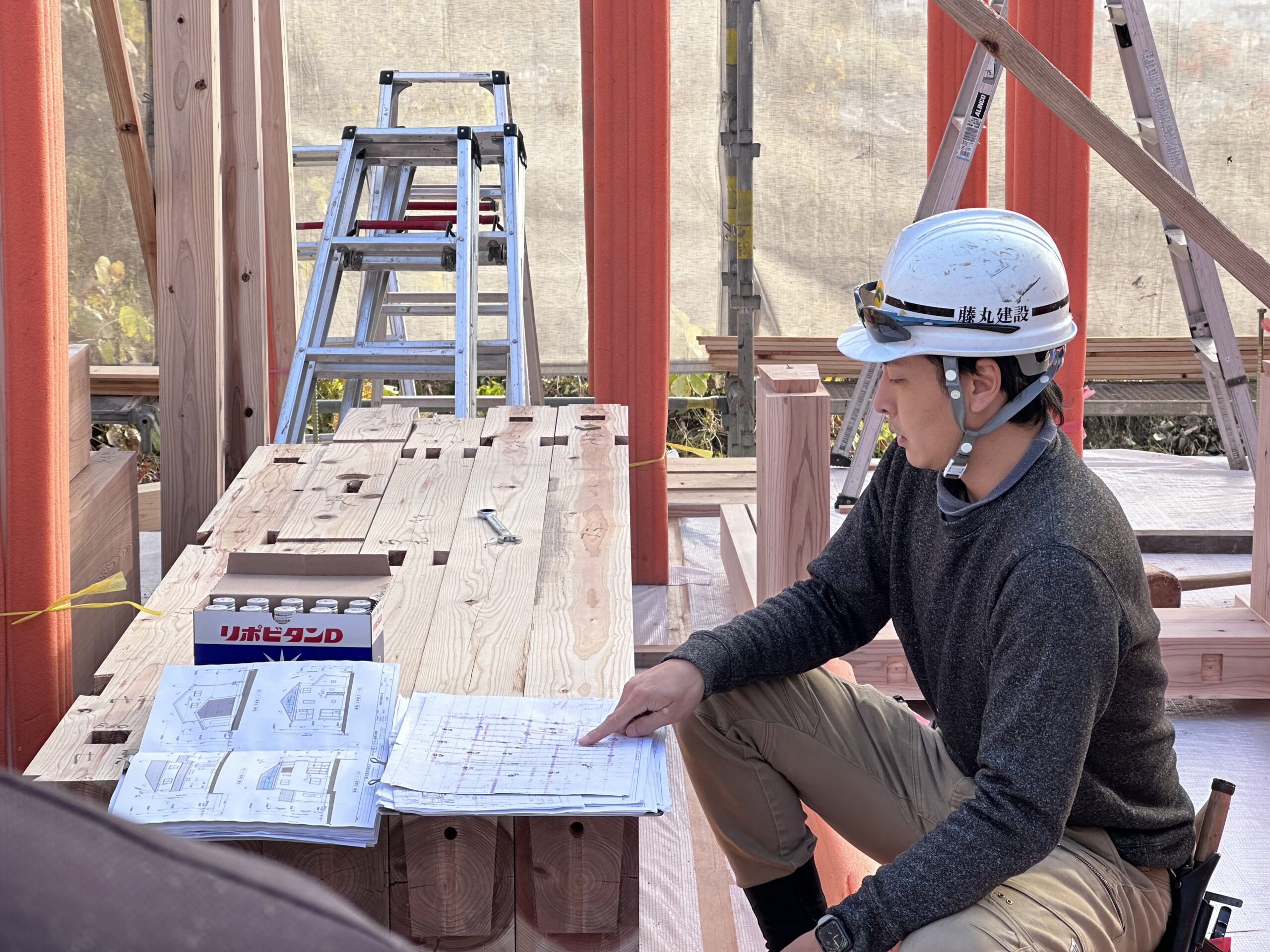 棟上げ中、ずっと眉間にしわが寄っていた梶原棟梁を見て、ご主人が「ずっと眉間にシワが・・・」
