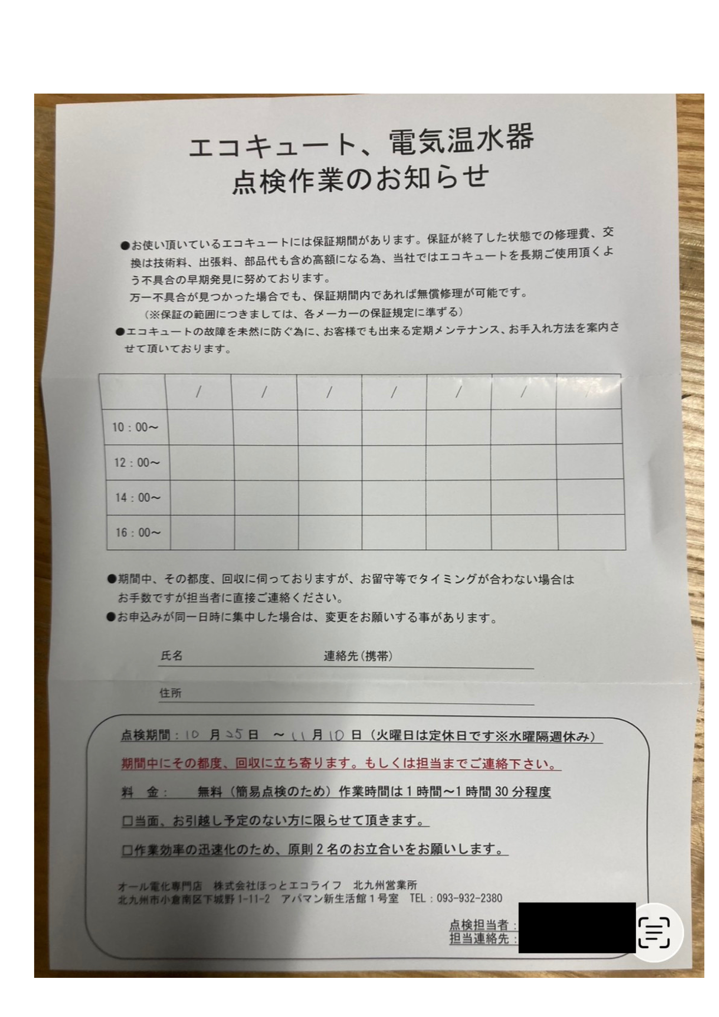 何かあれば藤丸建設もしくは直接メーカーさんにご連絡ください。
