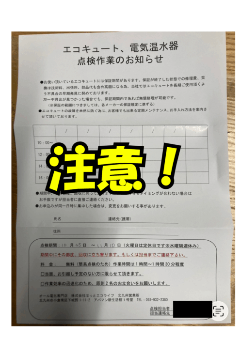 お施主様のポストのに下記のチラシが入っていたそうでご連絡がありました。