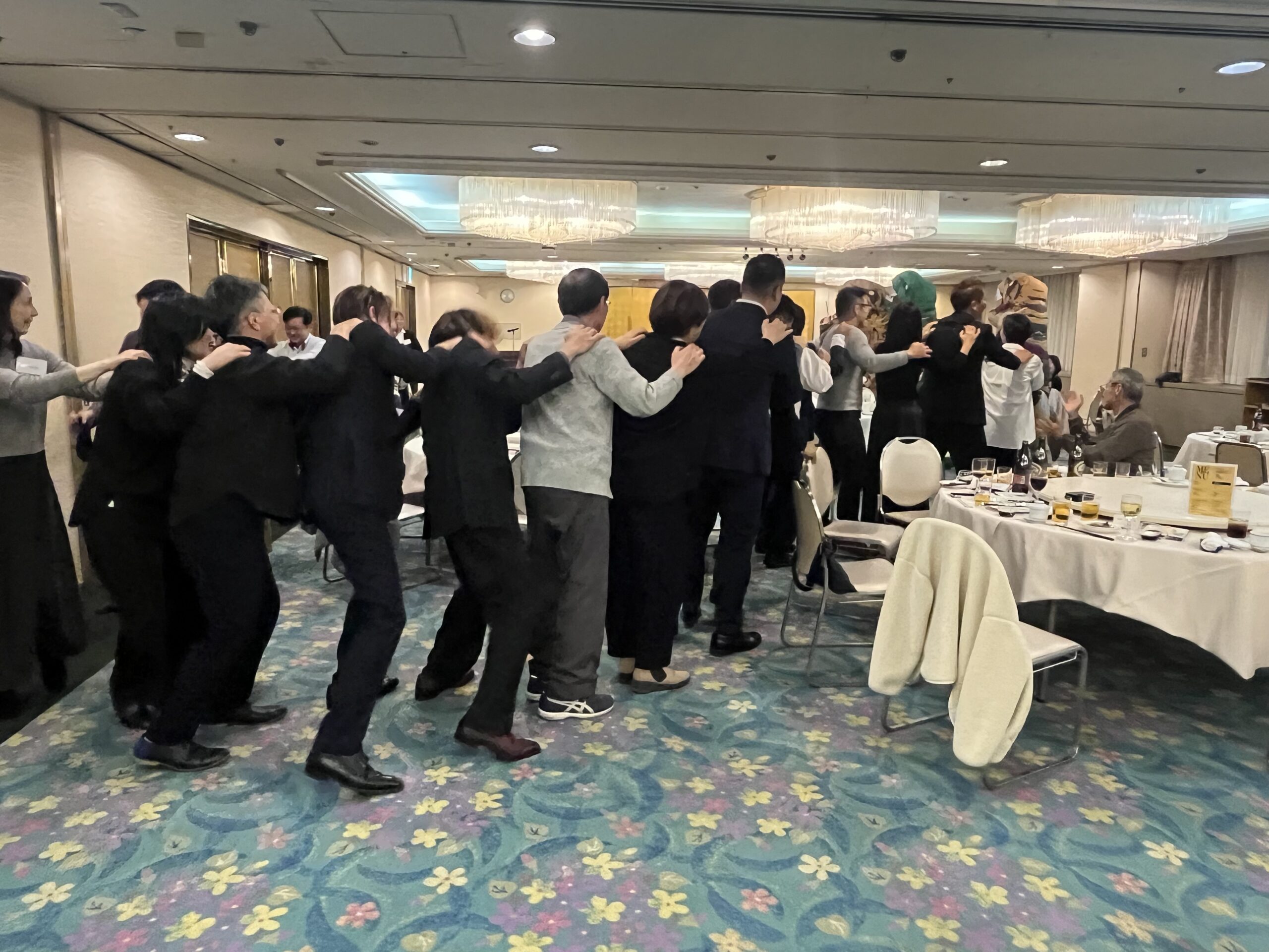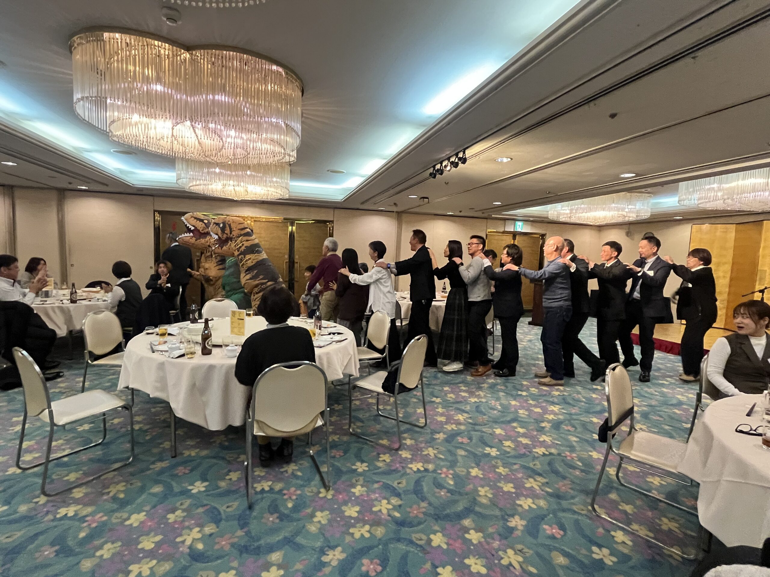 音楽かかって会場を練り歩く。社員さんとお施主様がだんだんだんだん連なってくれて長い行列へ