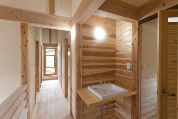 玄関に設けた造り付の靴箱は見事な建具屋さんのセンスが光る一つ。くるっと回れるキッチン周りは動線がよく家事がしや素そうな設計です。