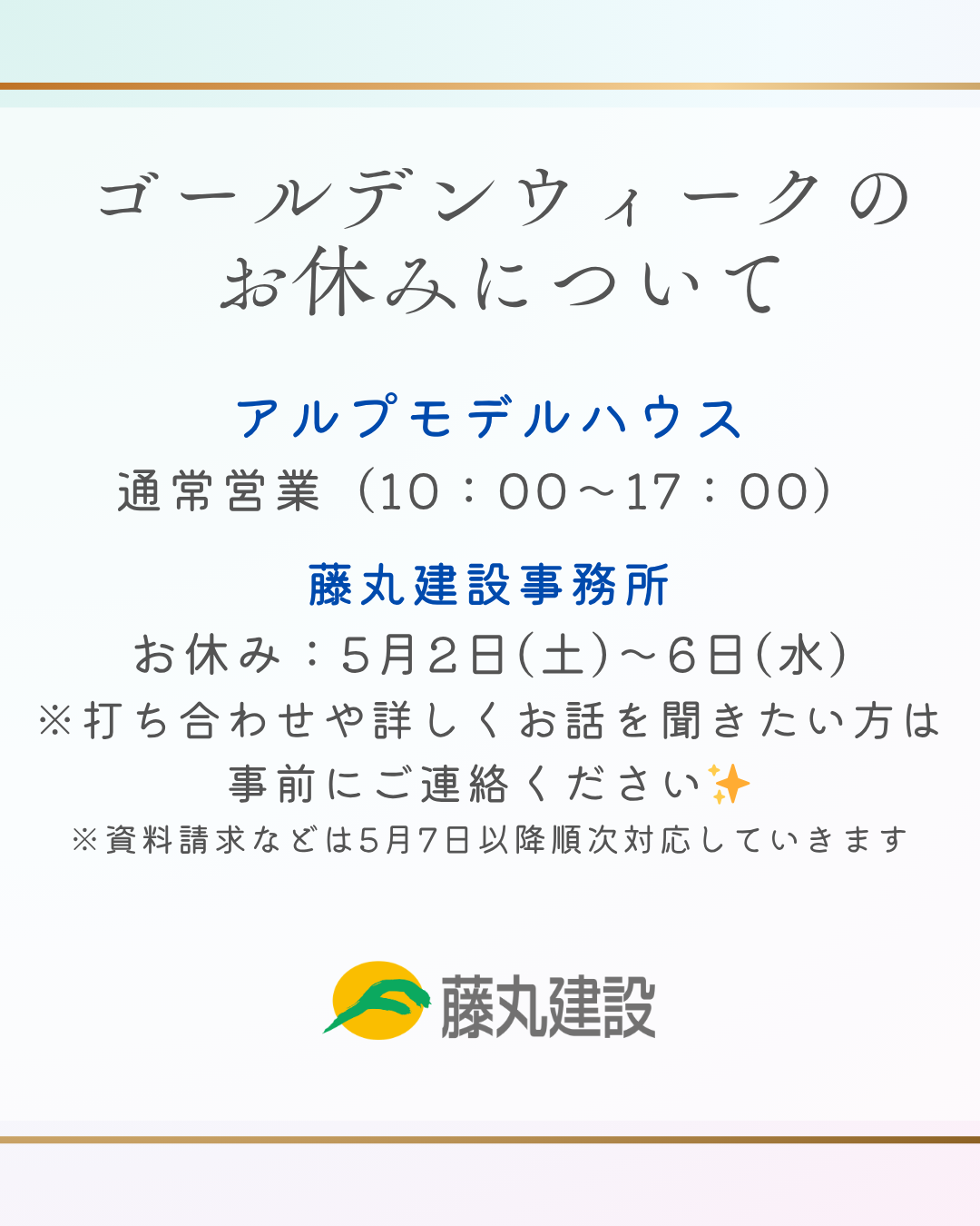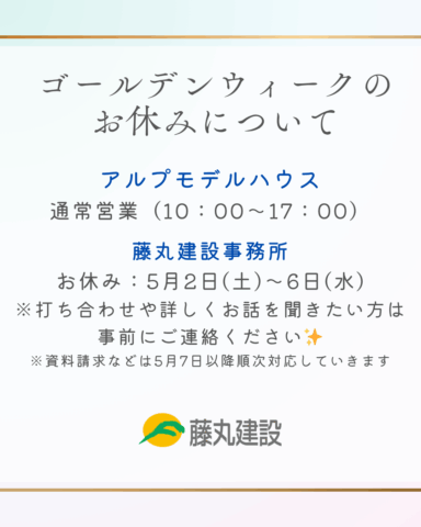 ゴールデンウィークはモデルハウスは営業しています🏠✨